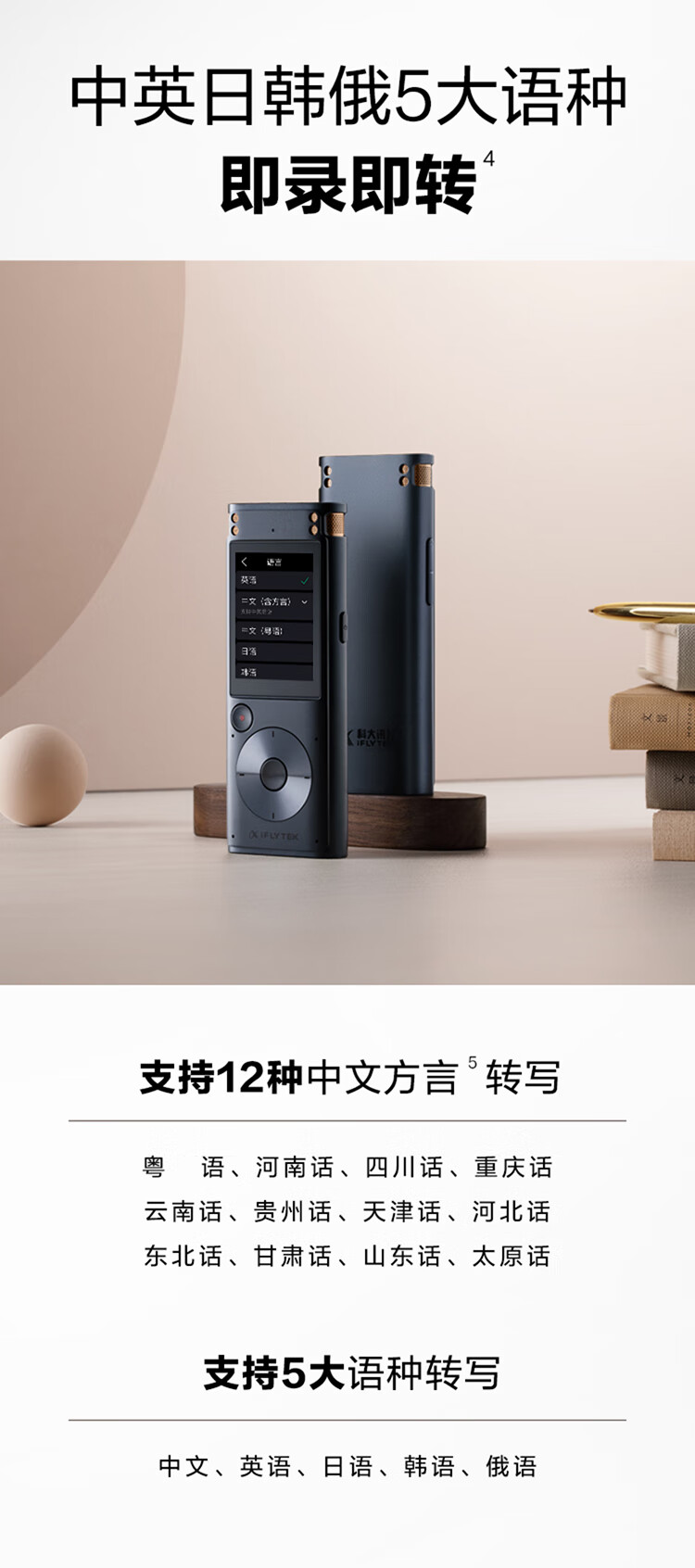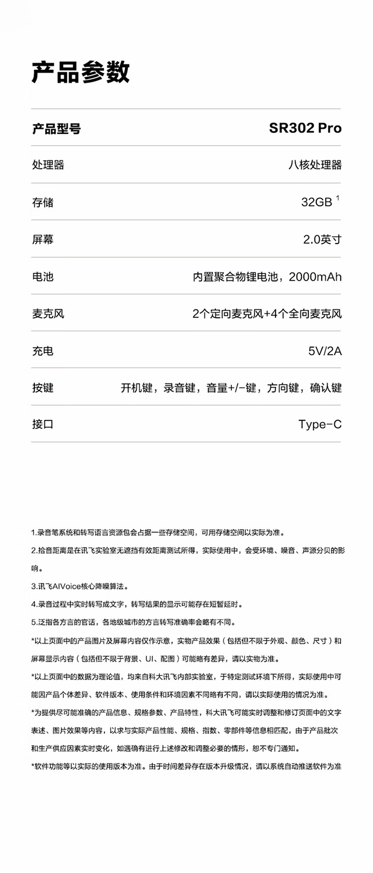 商品名称:科大讯飞智能录音笔SR302Pro 32G内存 专业录音 高清降噪 离线实时转写 360°拾音 免费转写 星空灰