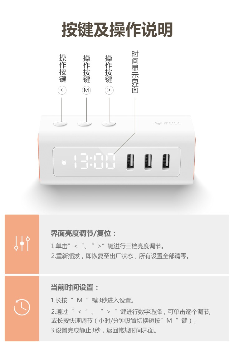 商品名称:集采公牛 床头USB充电插座带闹钟/插线板线长1.5米 GNV-UUP152 USB床头插座 6970031946919新疆西藏不发货