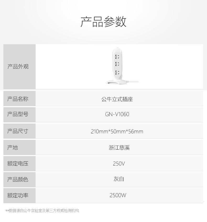 商品名称:公牛 立式多功能智能插座/拖线板 GN- V1060(不带USB孔) 长1.8米 新疆西藏不发货