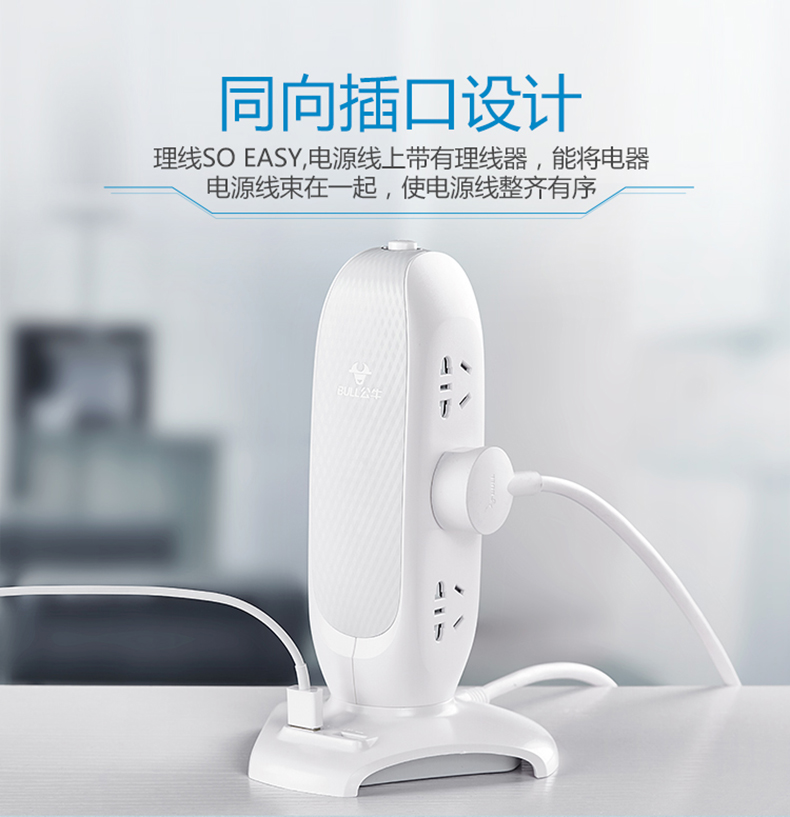 商品名称:公牛(BULL)立式USB插座 GN-V106U 6位全长1.8米过载保护带2USB口 6922646113033