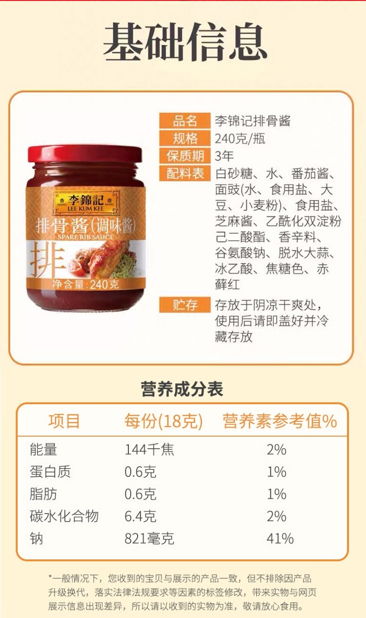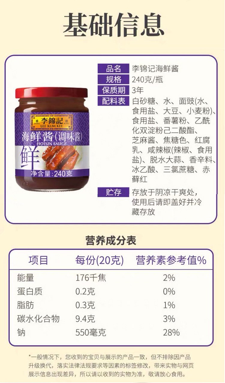 商品名称:李锦记 调味料套装D 990g+1410ml