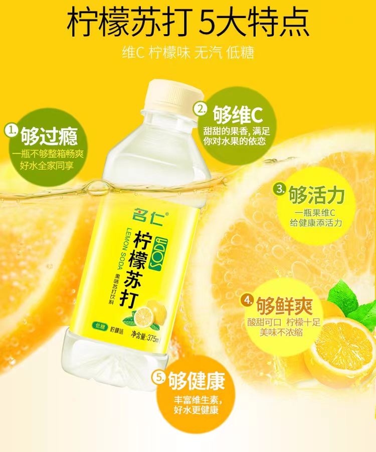 商品名称:名仁 柠檬苏打水 24瓶*375ml