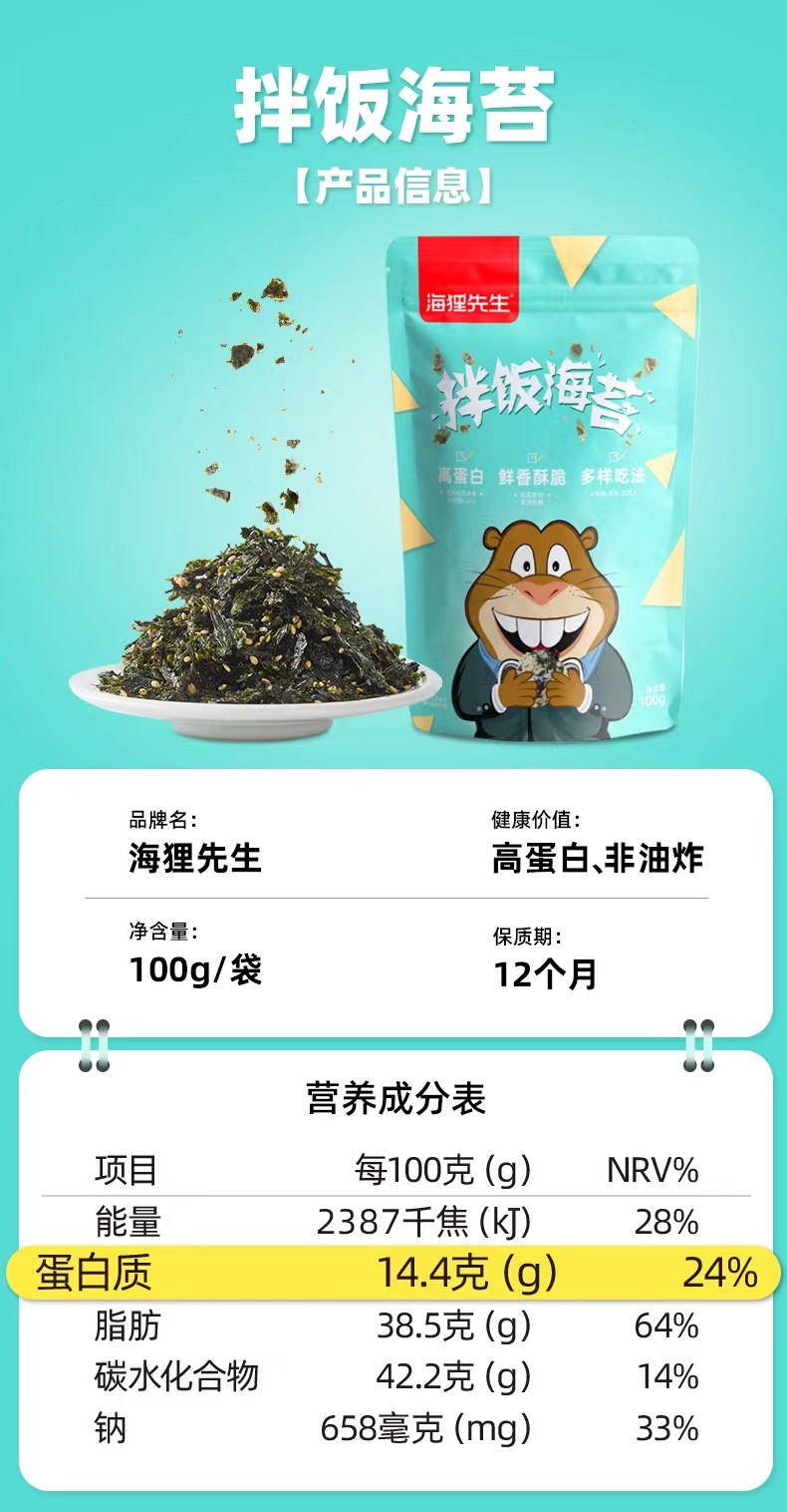 商品名称:海狸先生 饭团材料即食拌饭海苔 100g*3袋