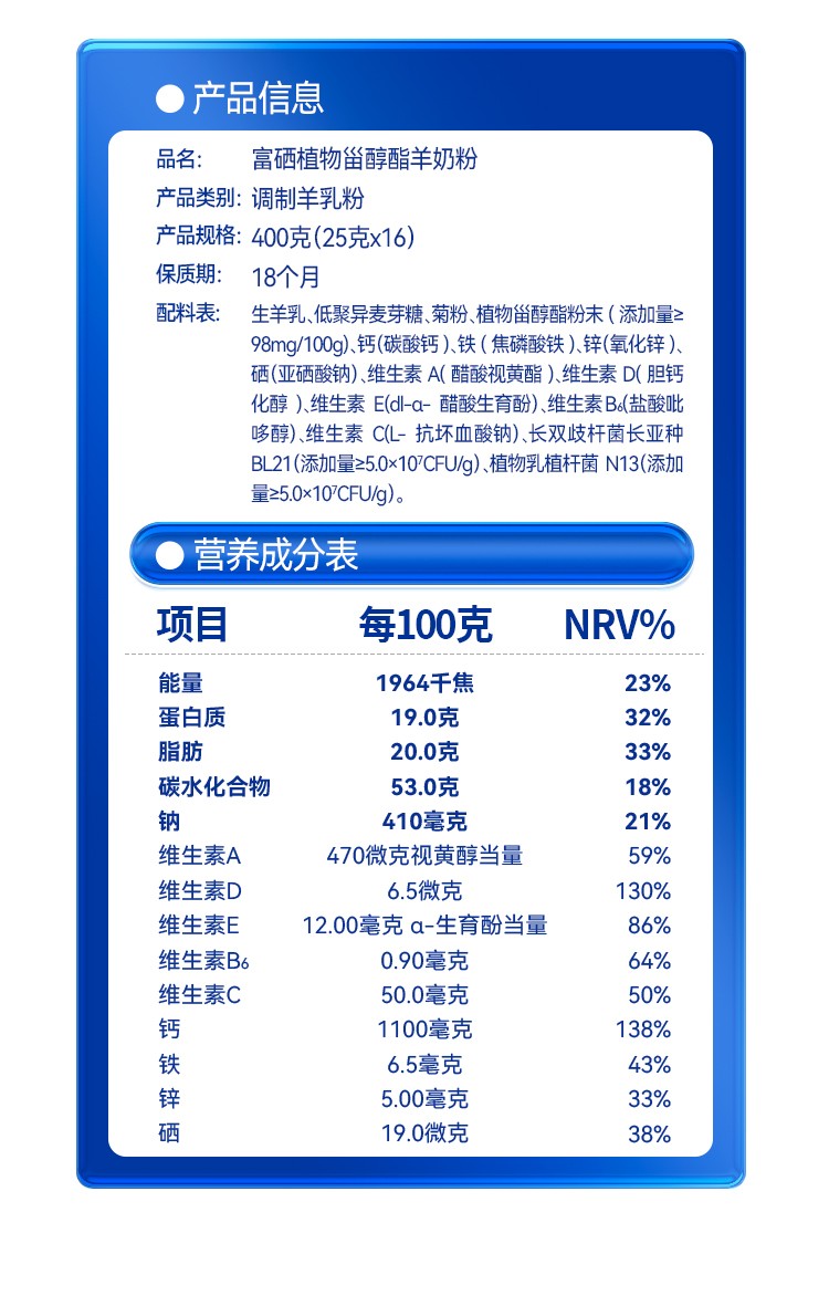 商品名称:卓牧 富硒高钙羊奶粉400g 6926444366035