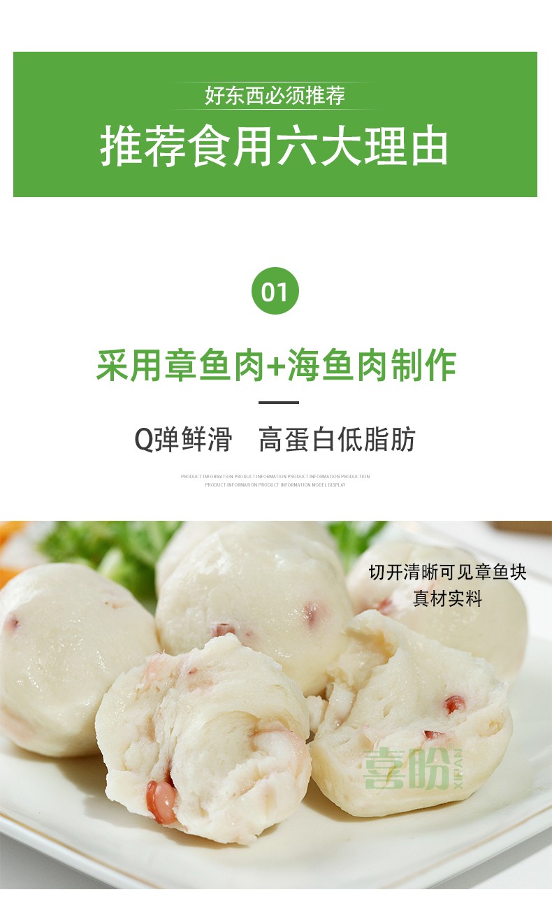 商品名称:喜盼 0脂肪章鱼丸 3包*250g
