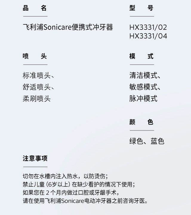 商品名称:飞利浦Sonicare便携式水牙线HX3331/02