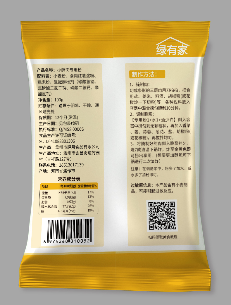商品名称:森庄农品小酥肉粉100g*6袋+番茄酱6包