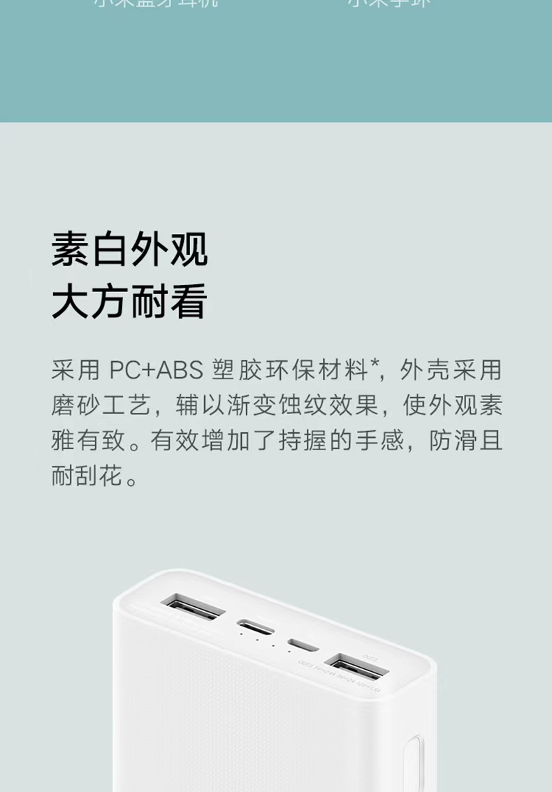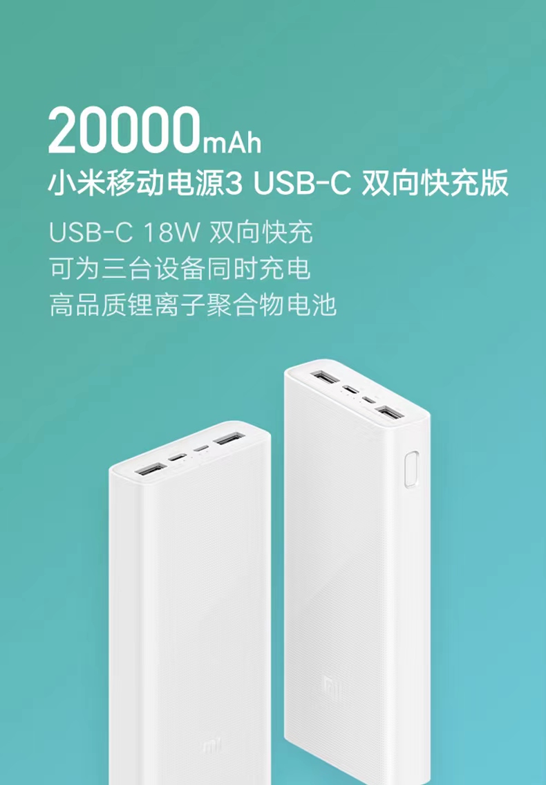 商品名称:小米 移动电源3 20000mAh USB-C双向快充版 白色