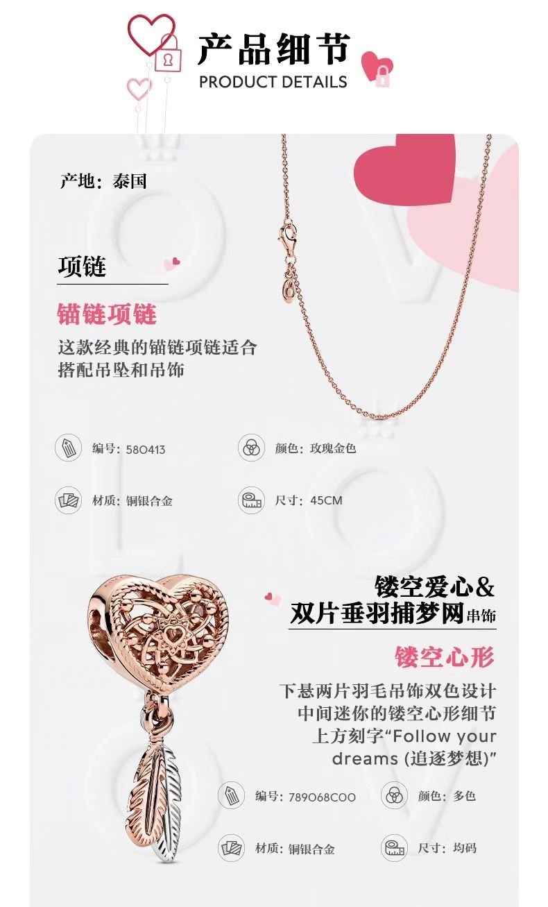 商品名称:潘多拉 梦入我心项链套装ZT2262 925银 45cm