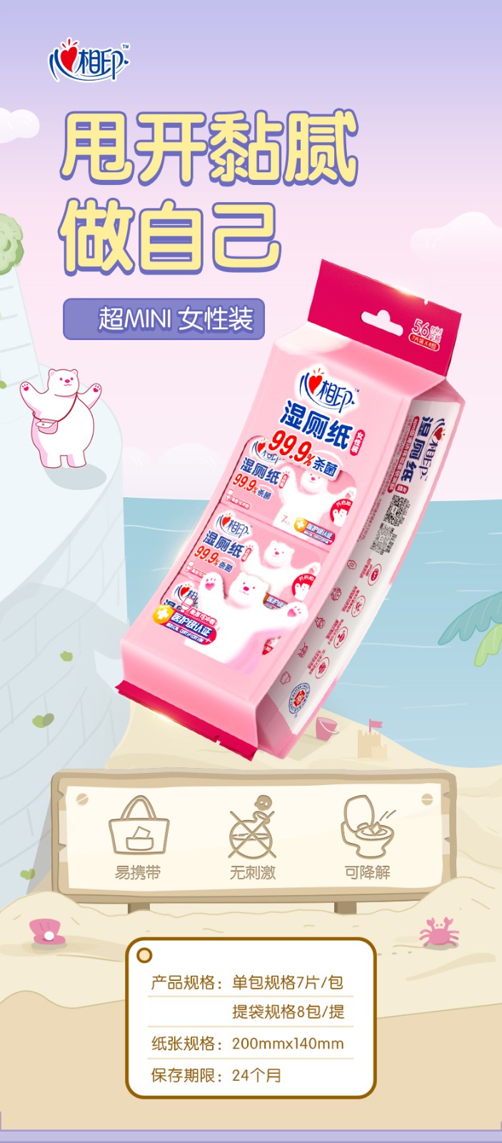 心相印 湿厕纸 女生版 3提*8包*7片 3XCY007+P2(提装)6903244681735