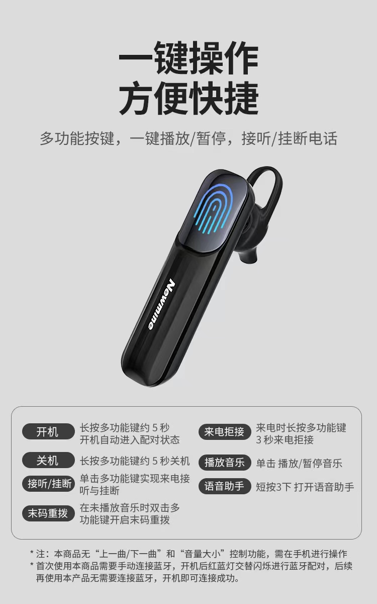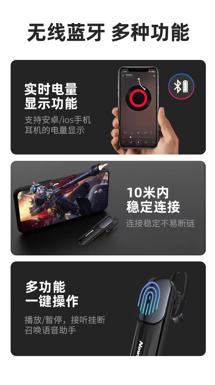 商品名称:纽曼 单耳商务通话蓝牙耳机L18 黑色