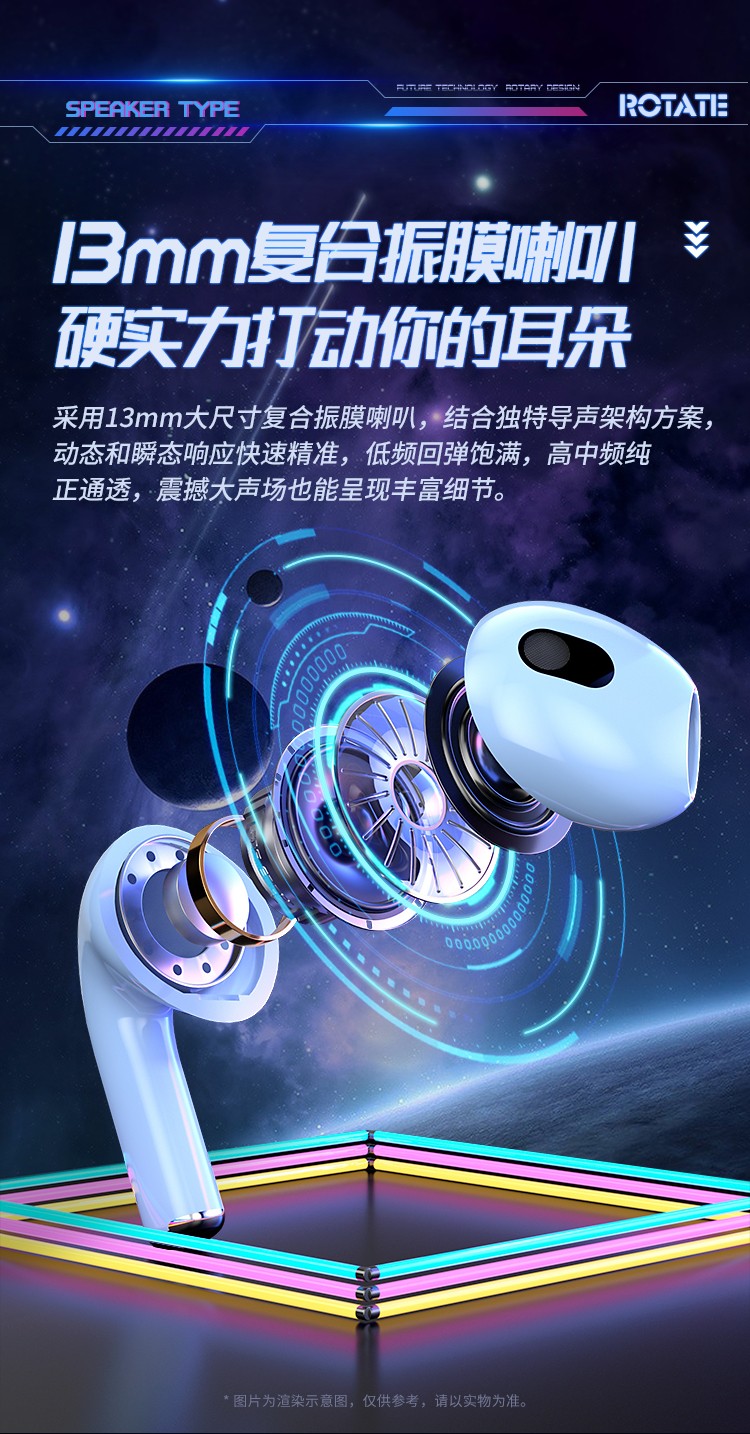 纽曼 TWS真无线旋转蓝牙耳机MK006 黑色/金色/紫色/银色/蓝色 可选下单备注颜色