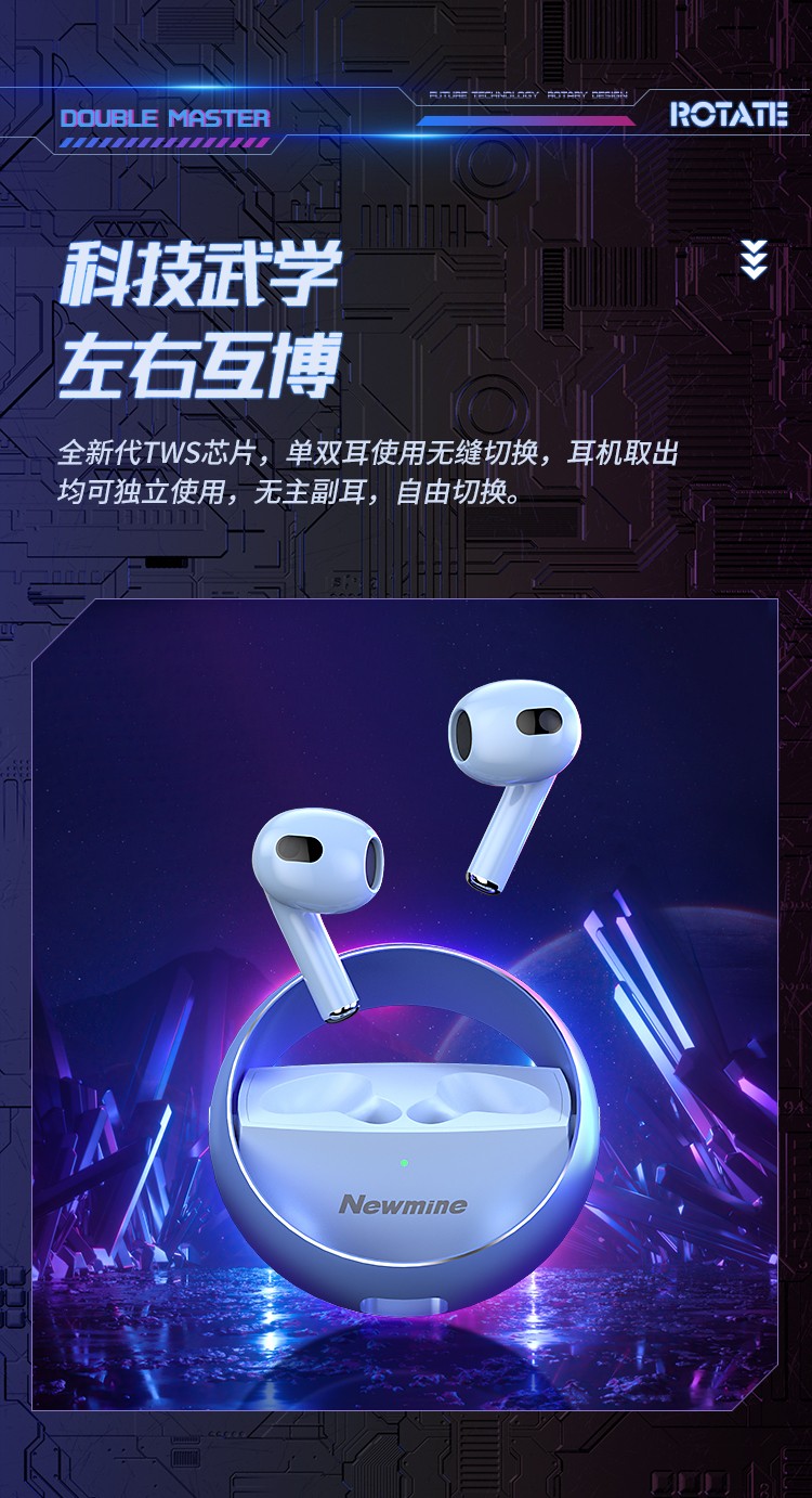 商品名称:纽曼 TWS真无线旋转蓝牙耳机MK006 黑色/金色/紫色/银色/蓝色 可选下单备注颜色