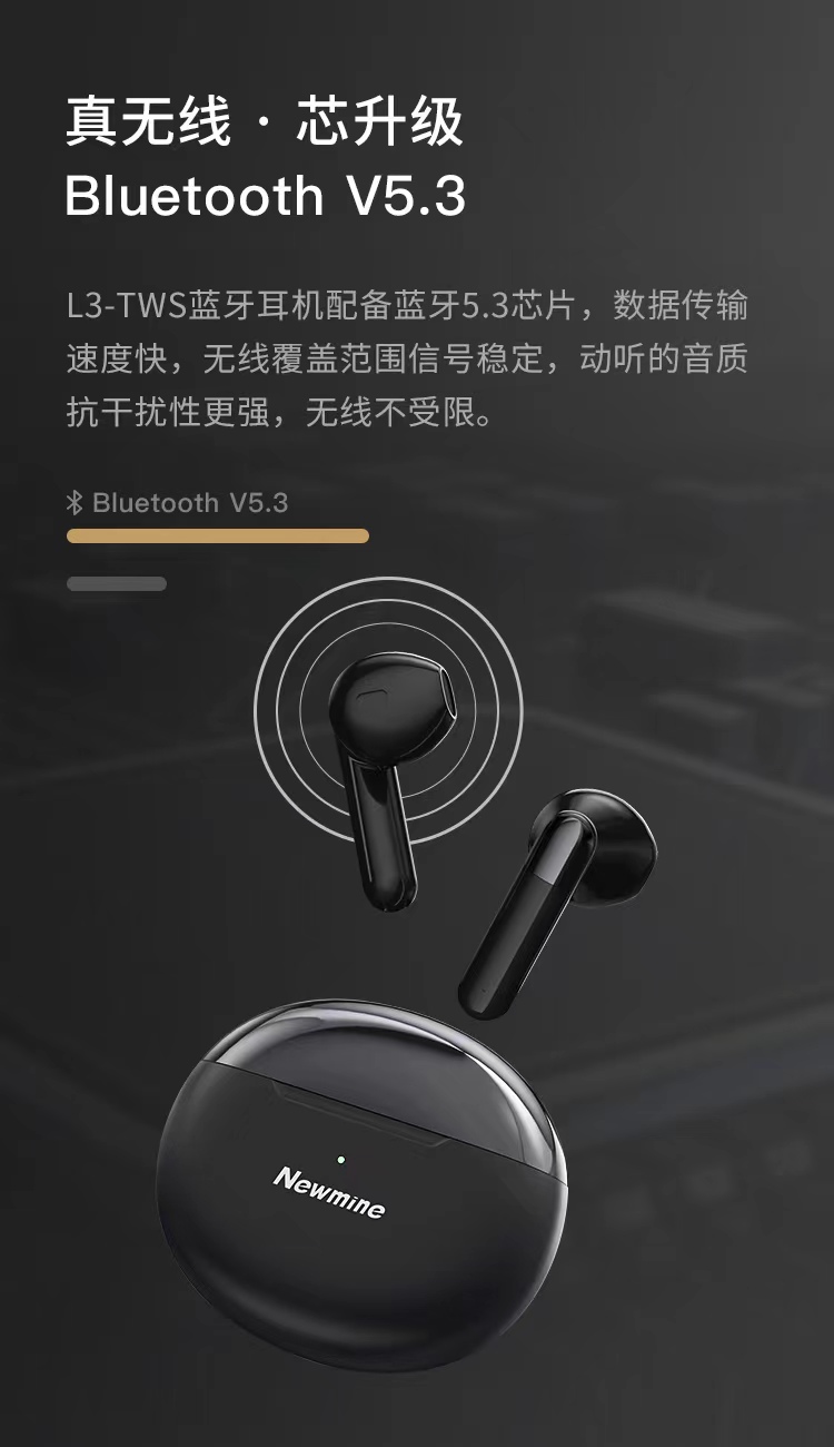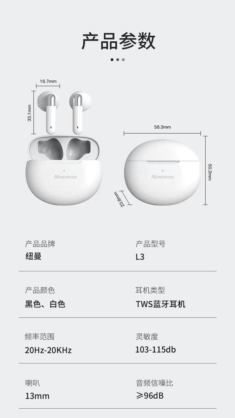 商品名称:纽曼 TWS真无线双耳蓝牙耳机L3 黑色/白色 可选下单备注颜色