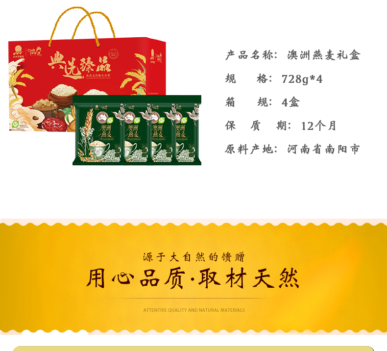 商品名称:北大荒·典选澳洲燕麦礼盒2912g