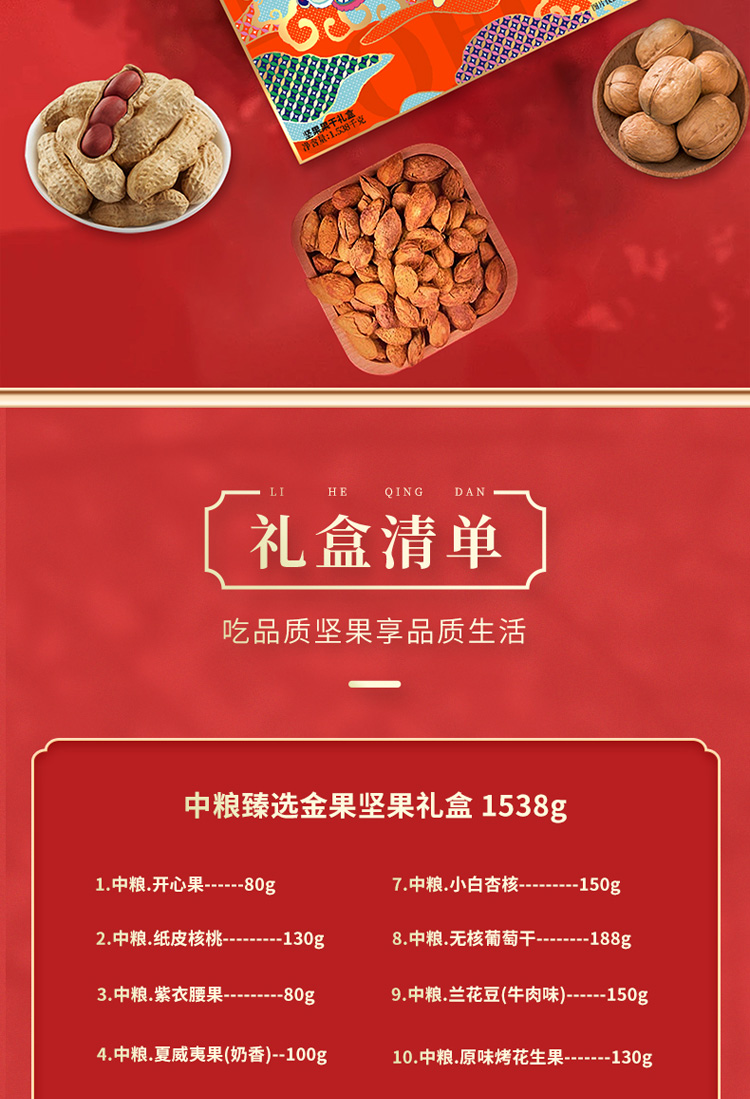 商品名称:中粮可兰纳斯中粮臻选金果坚果礼盒1538g