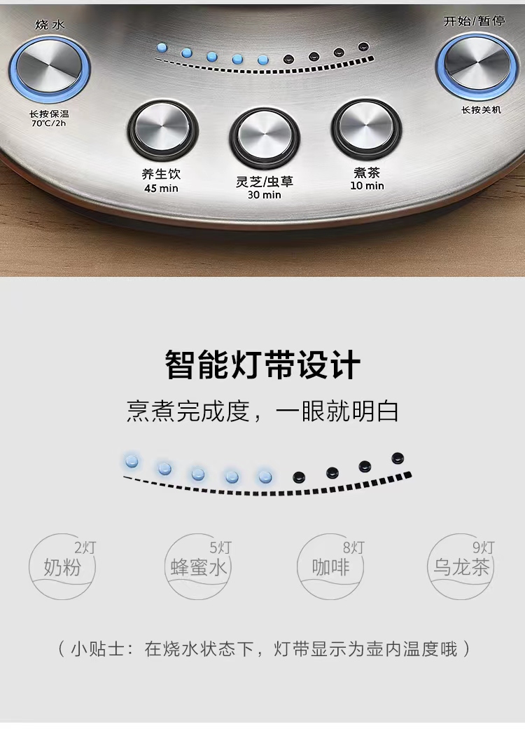 商品名称:北鼎 多功能养生壶全自动家用泡茶壶1L K21 6950386603149