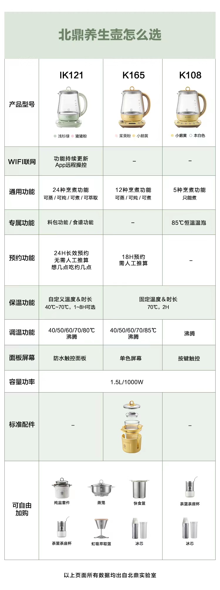 商品名称:北鼎 多功能养生壶K165 茱萸粉/浅杉绿/小鹅黄 可选下单备注颜色