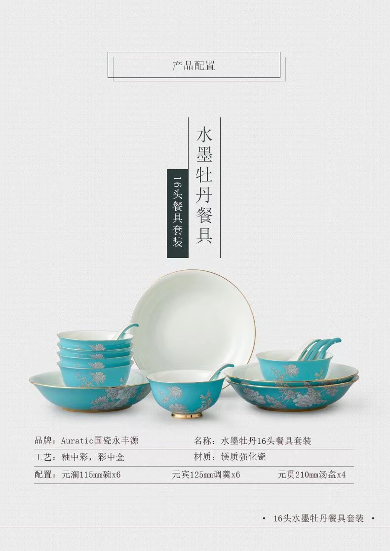 商品名称:永丰源 水墨牡丹陶瓷碗碟餐具16头