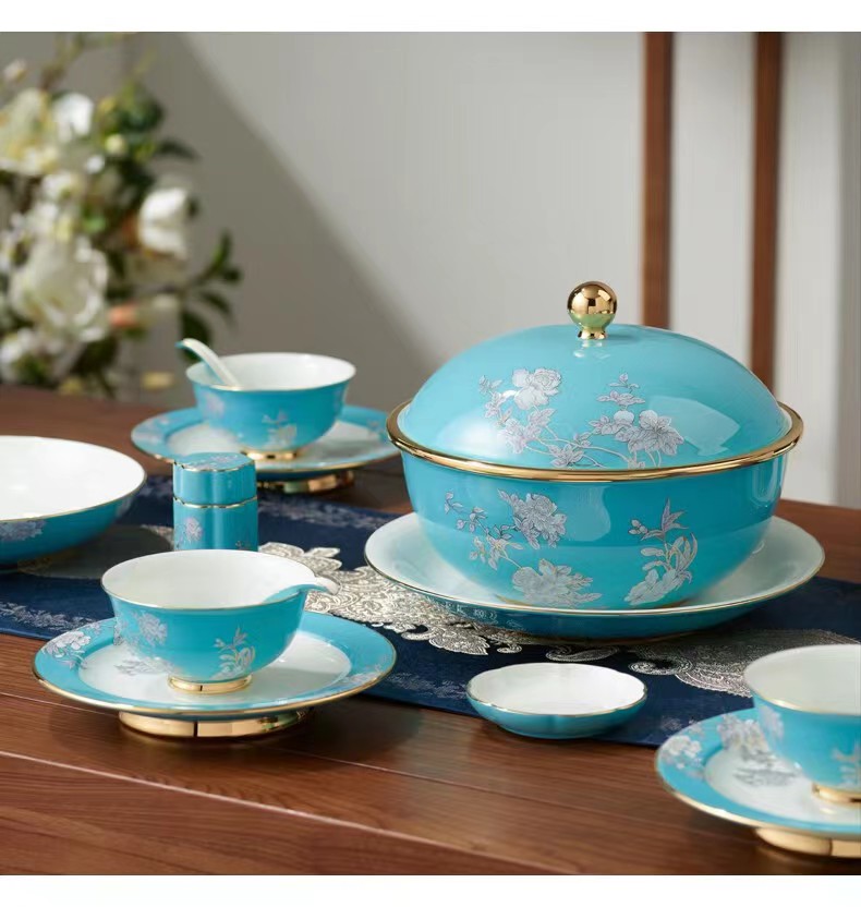 永丰源 水墨牡丹陶瓷碗碟餐具16头