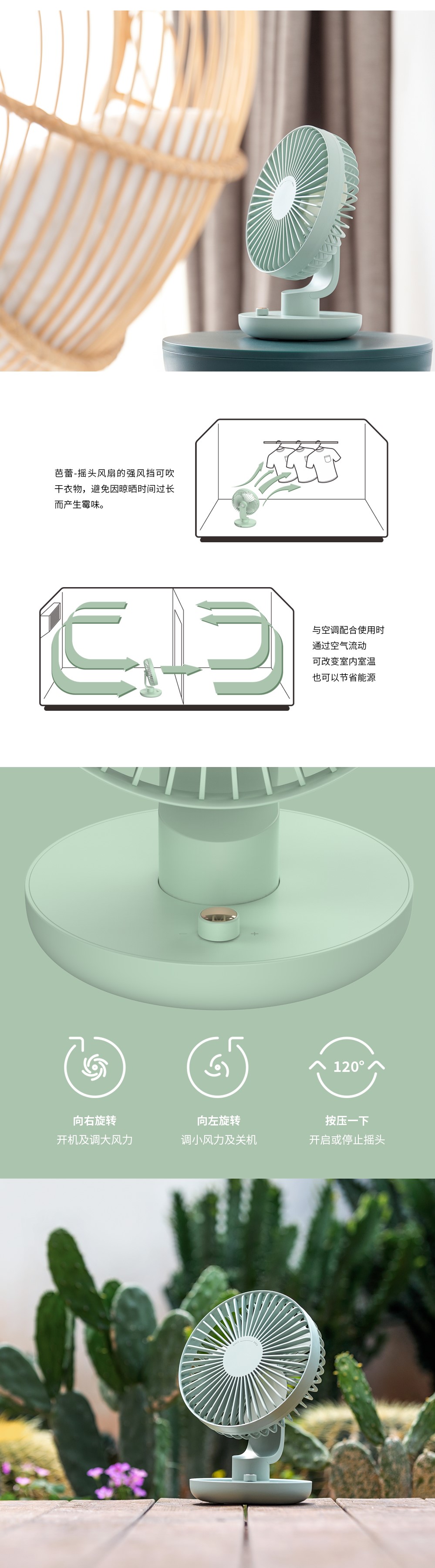 商品名称:叁活 芭蕾-桌面摇头风扇209 白/粉/绿 可选下单备注颜色