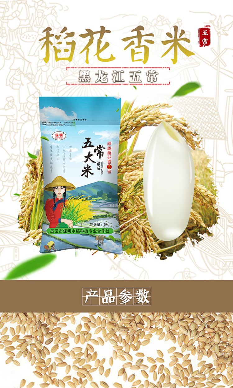 商品名称:保明五常大米原粮稻花香2号 五常市稻米合作社种植5KG