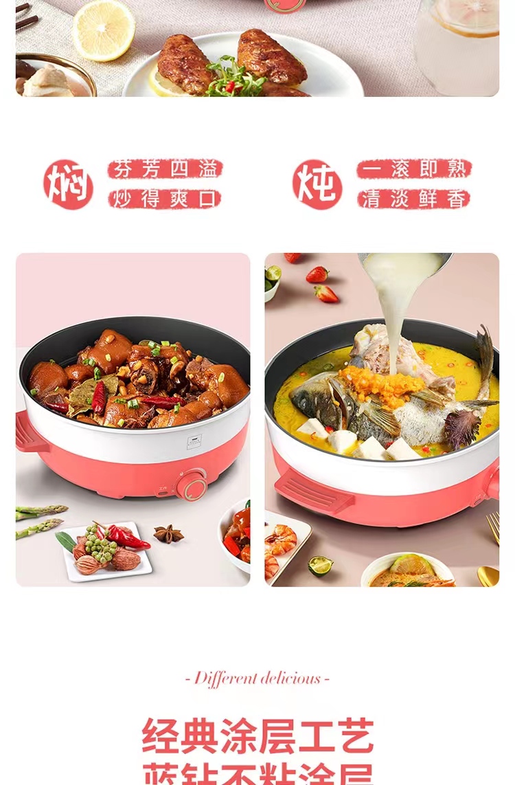 德国蓝宝 火锅家用大容量多功能电炒锅电火锅 分体设计锅身 4L 容量BP-DHG135(A) 6976908860869