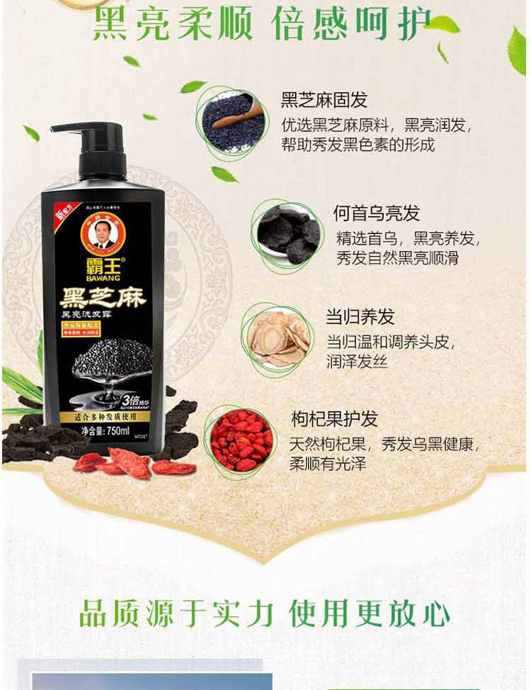 商品名称:霸王黑芝麻柔亮洗发露750ml【新老款随机发货】10101011456