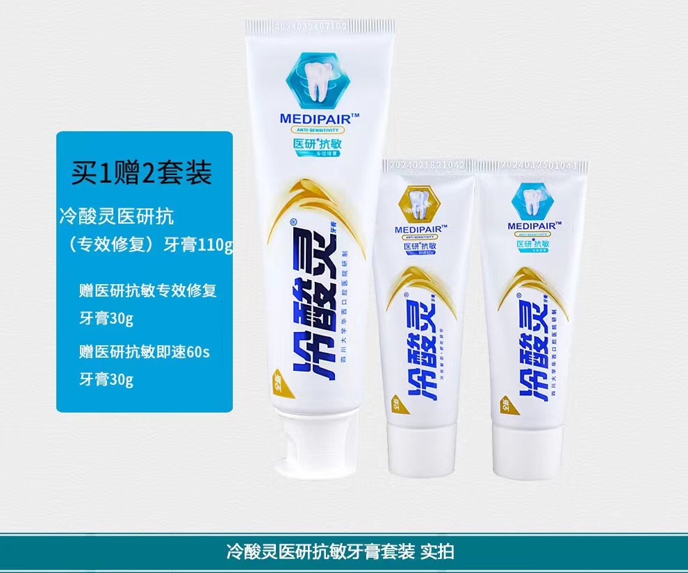 商品名称:冷酸灵专效修复牙膏110克+即速抗敏牙膏30克+专效修复牙膏30克套装(升级版)