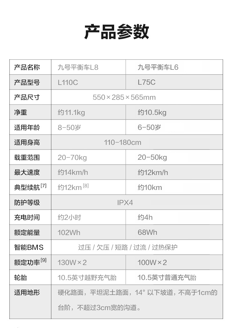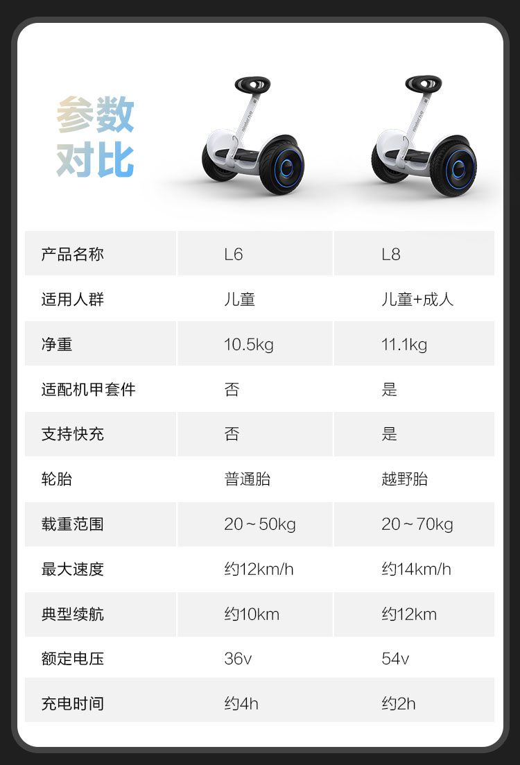 商品名称:九号Ninebot 平衡车 L8