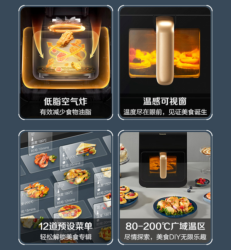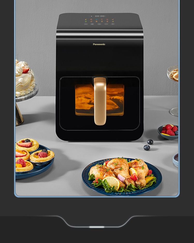 松下(Panasonic)多功能全程可视家用全自动无油6L大容量 无需翻面 空气炸锅 蓝色 NF-HC600-A 6938181043261
