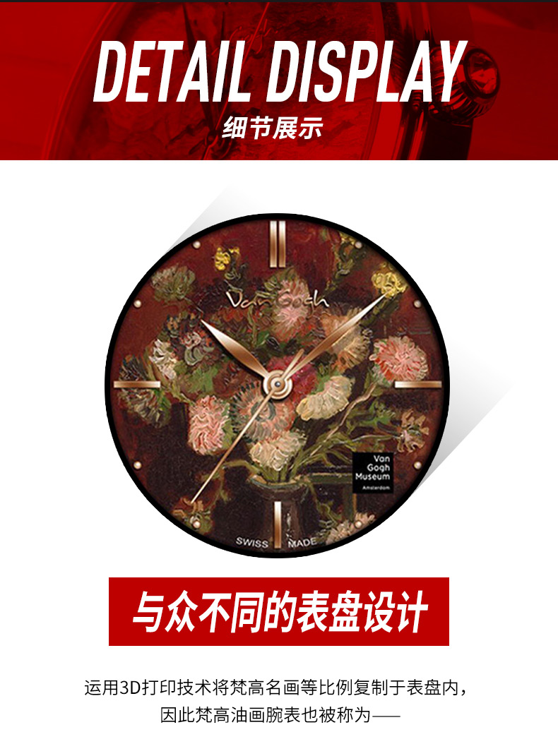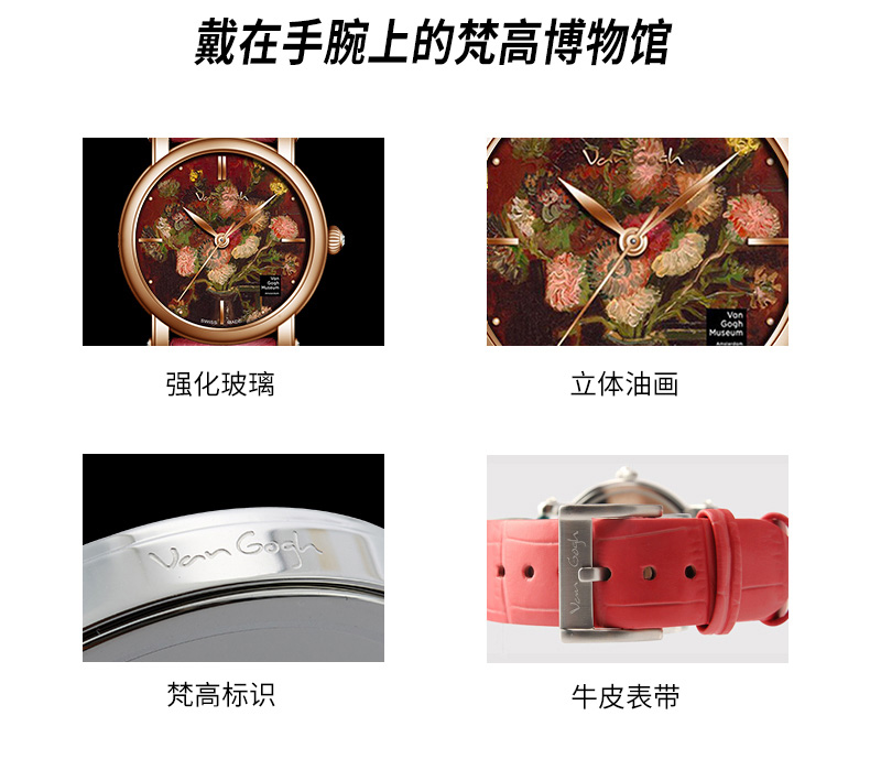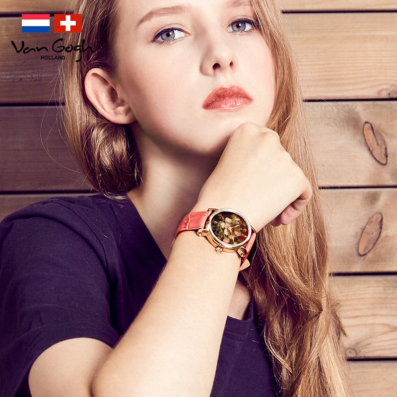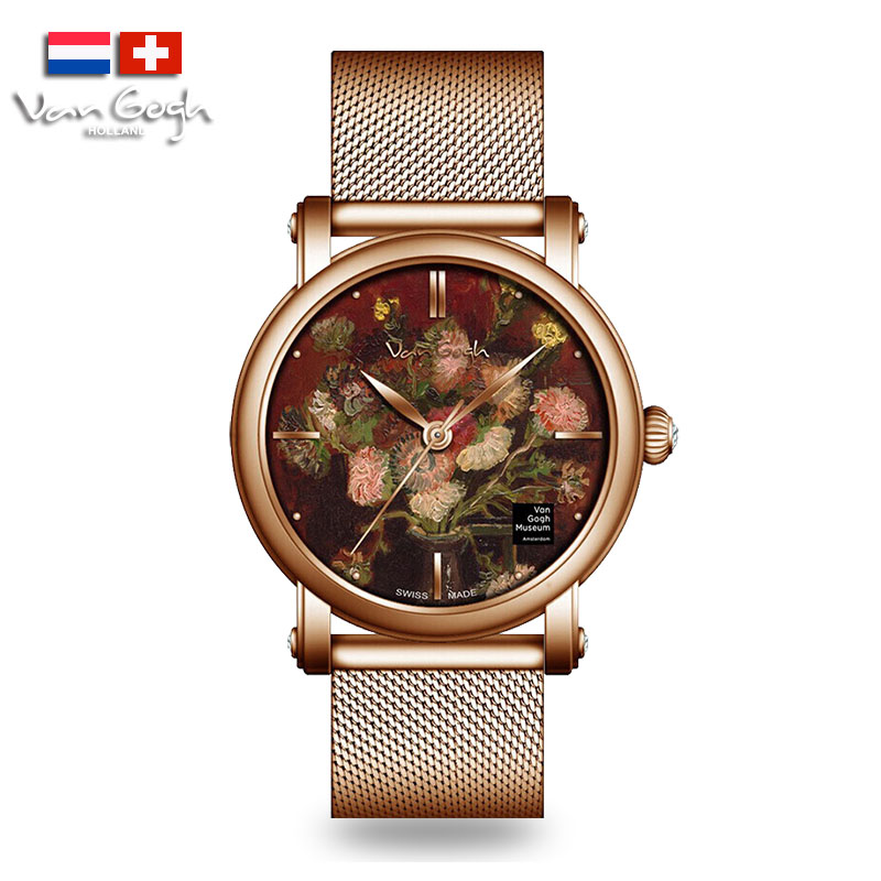 梵高(VanGogh)瑞士女士石英手表 紫苑和夹竹桃Lady 16-RM玫瑰金 6972709230269