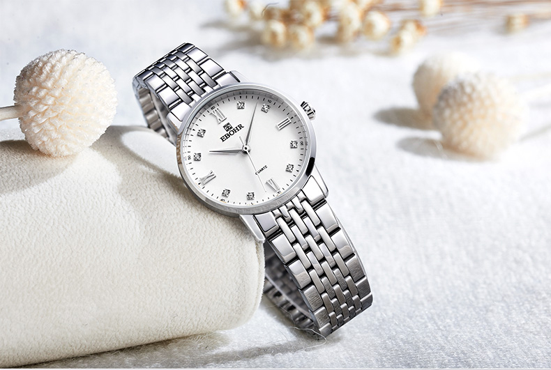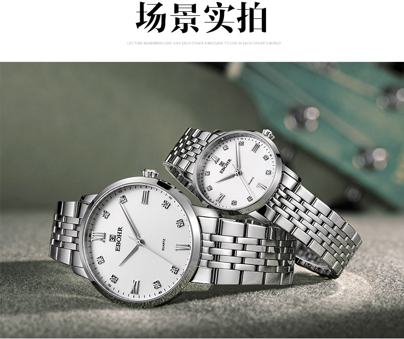 商品名称:依波(EBOHR)手表 休闲简约时尚石英镶锆石钢带男女表情侣对表 男表黑面 50290314