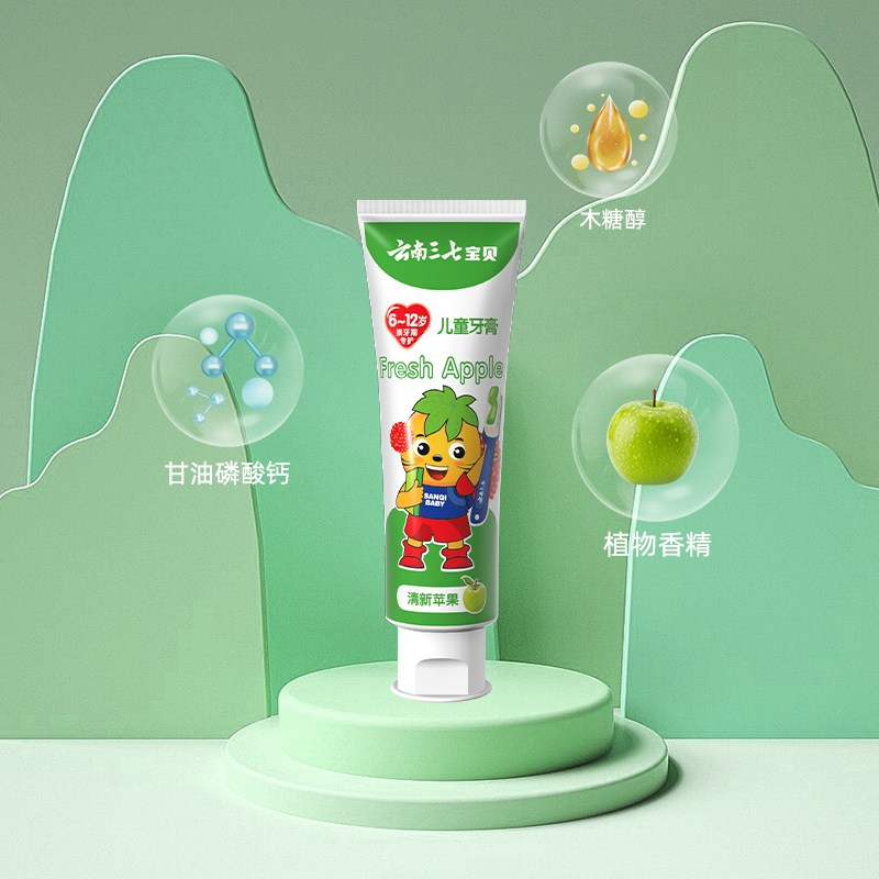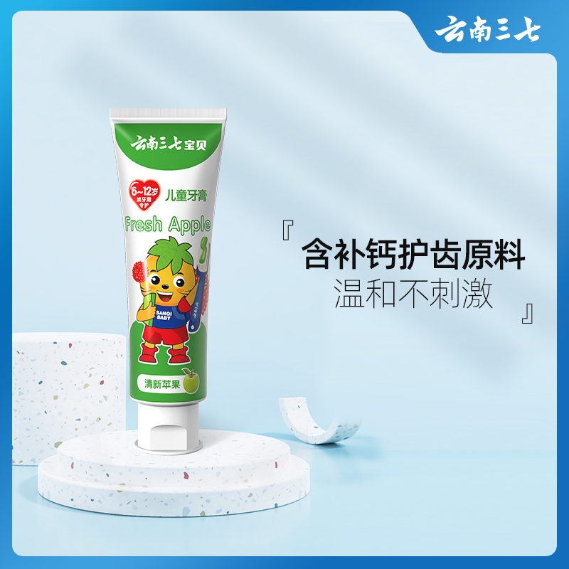商品名称:三七 儿童牙膏套装(清新苹果)升级版V 70g+牙刷 D9023-1V