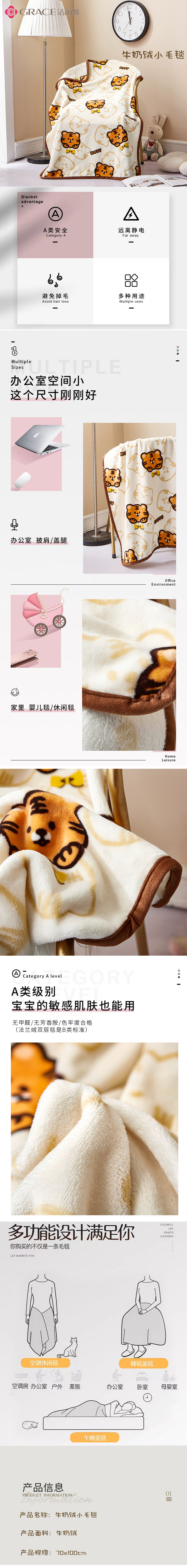 洁丽雅 Grace披搭毯-吉祥虎JLY-YH585 70*100 350g