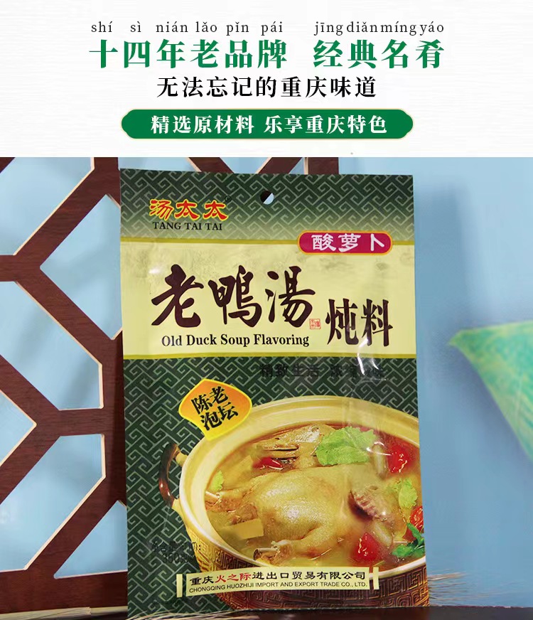 商品名称:汤太太 酸萝卜老鸭汤炖料 清汤火锅汤锅底料350g 新老包装 随机发货