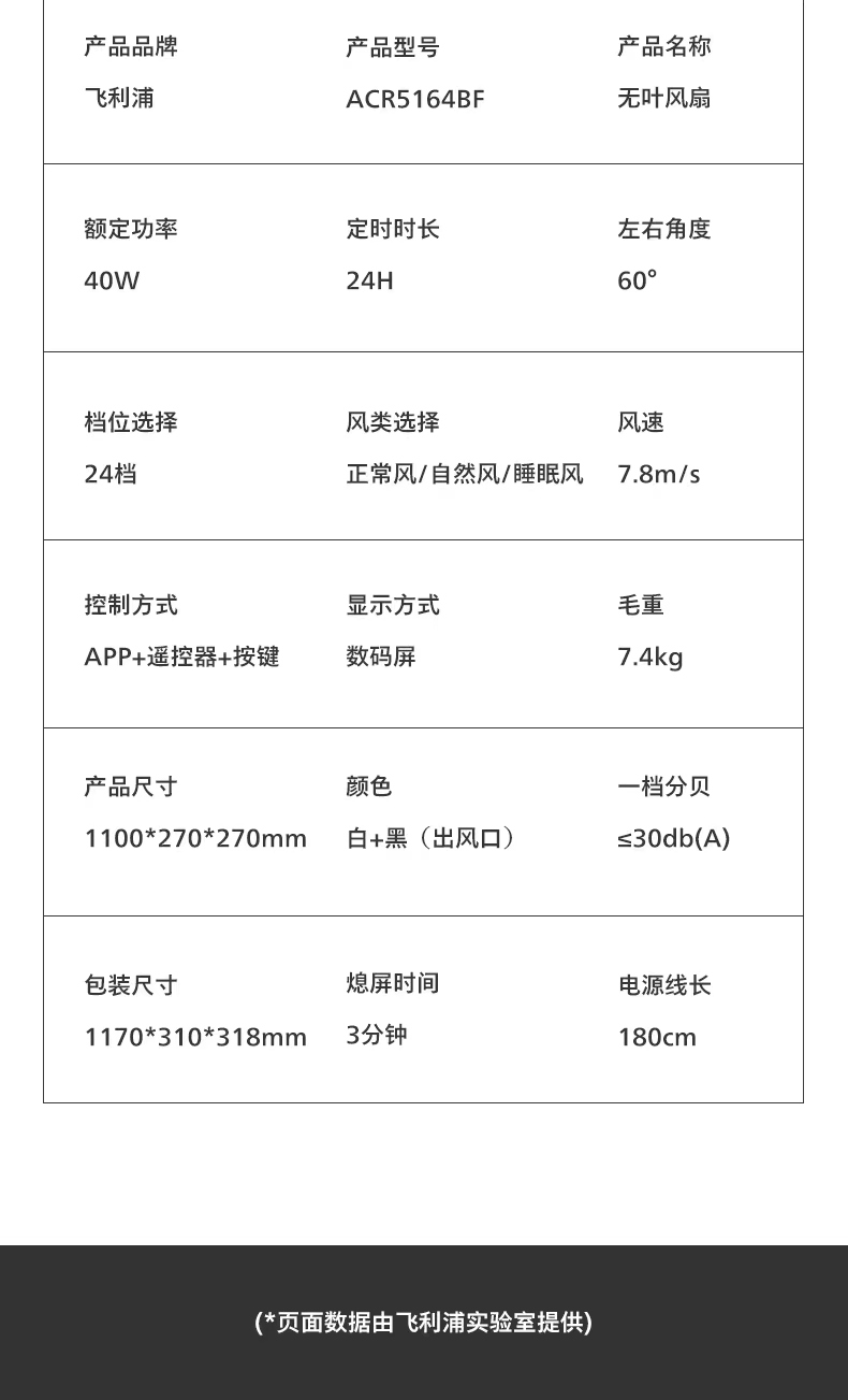 商品名称:飞利浦 无叶风扇 塔扇家用智能风扇 ACR5164BF 等离子净化+APP款