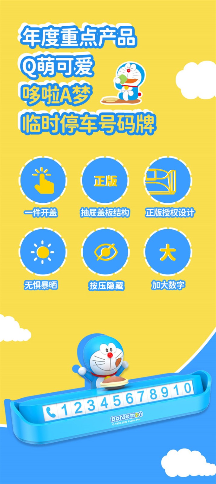 商品名称:洛克ROCK 哆啦A梦 停车号码牌 蓝白 可隐藏号码/更换号码