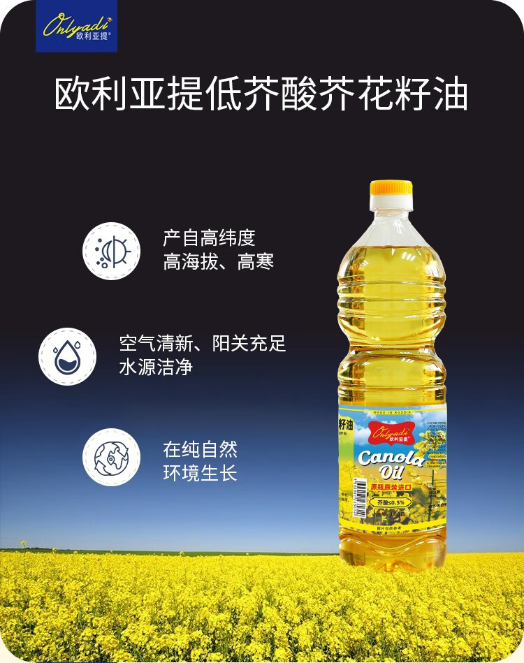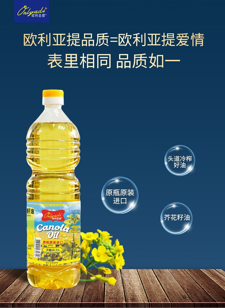 商品名称:欧利亚提低芥酸芥花籽油2.8升