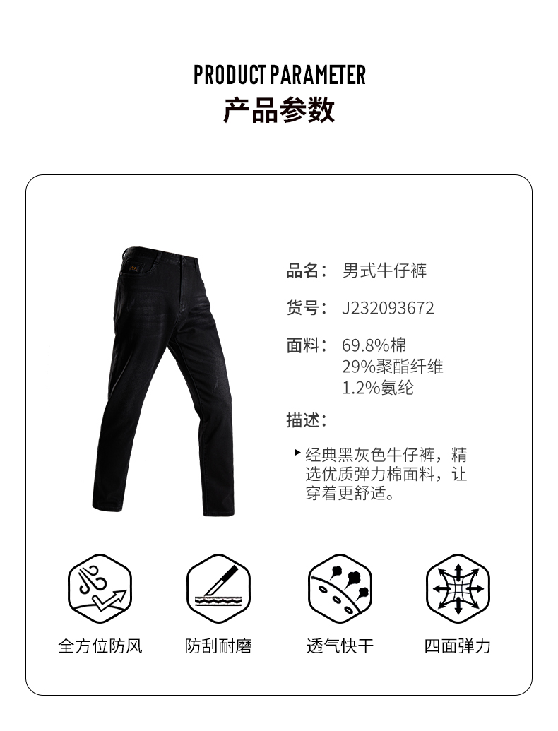 商品名称:Jeep 男式牛仔裤 J232093672 黑灰色M/L/XL/2XL/3XL/4XL可选下单备注尺码