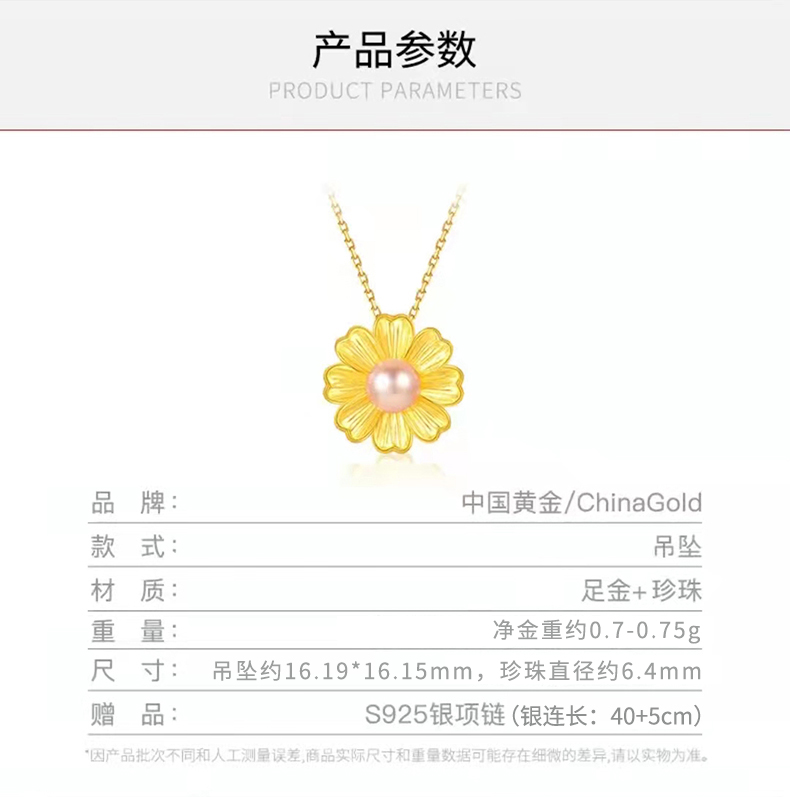商品名称:中国黄金 5D足金花瓣珍珠吊坠 ZGHJ211174
