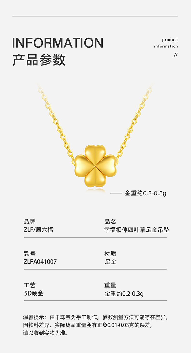 商品名称:周六福 足金幸福相伴四叶草吊坠 ZLFA041007