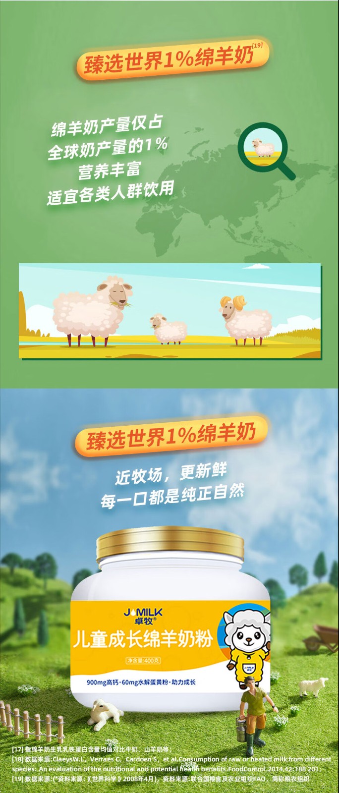 商品名称:卓牧(JOMILK)儿童成长绵羊奶粉4段儿童配方调制乳粉 儿童成长绵羊奶粉400g*1罐 6926444300282