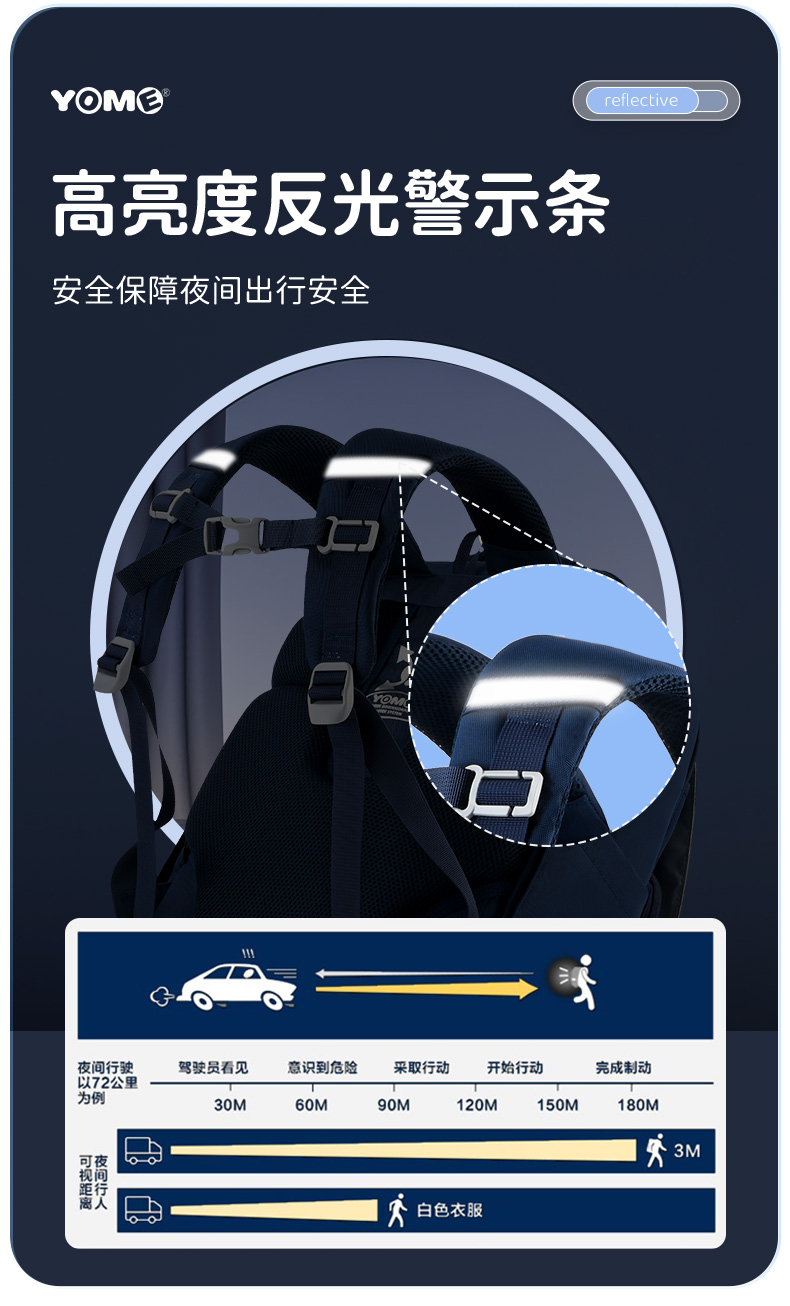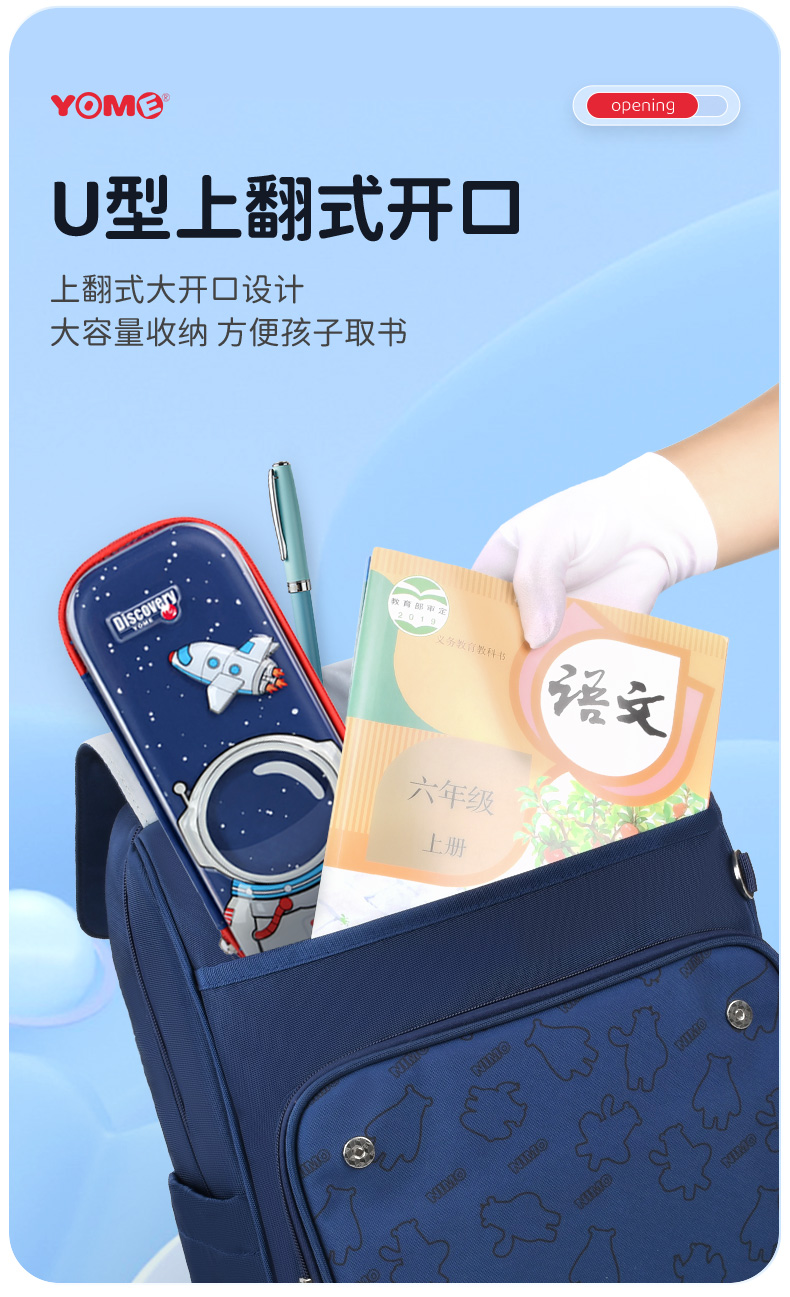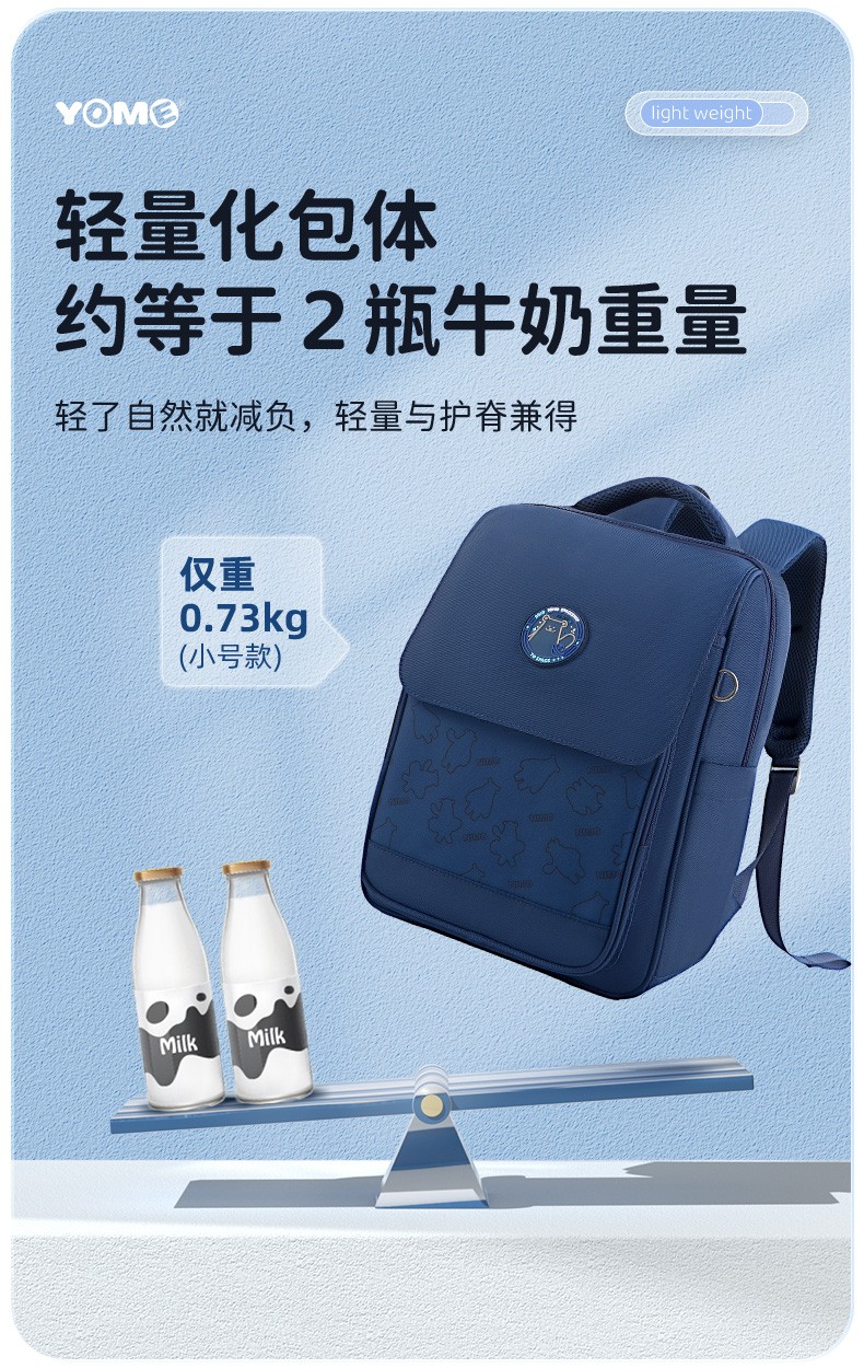 商品名称:yome 护脊书包 Y21-7018 粉色北欧风大号/藏青北欧风大号 可选下单备注颜色