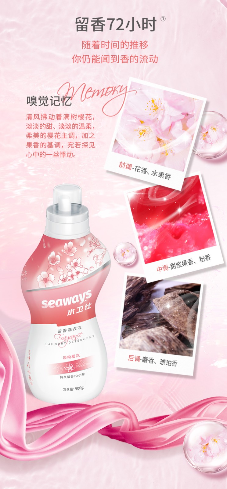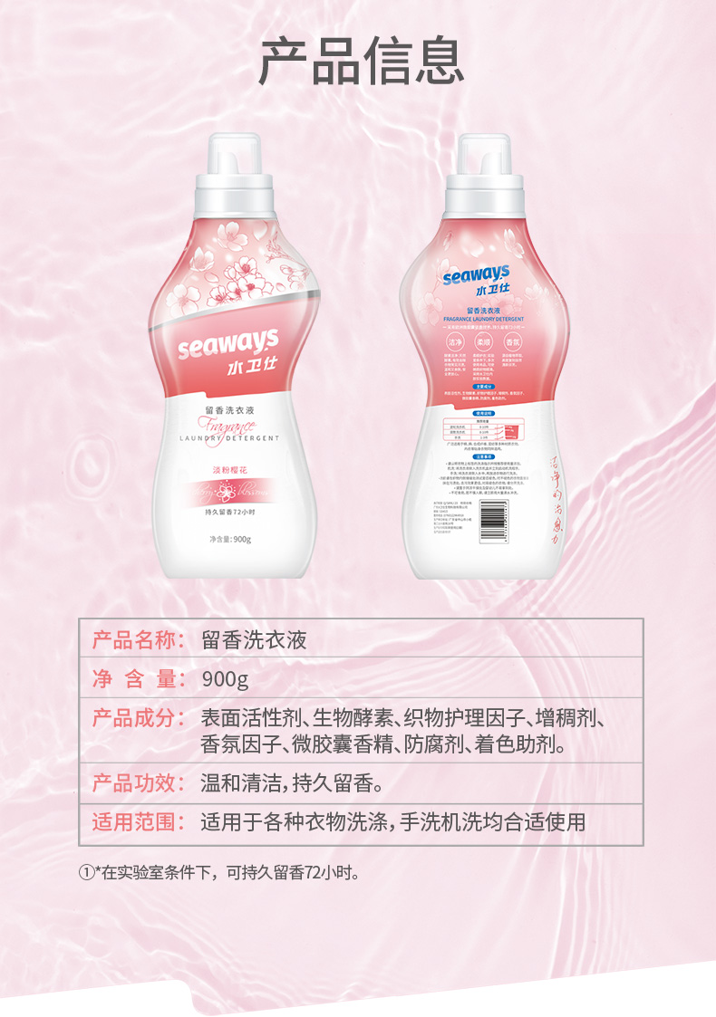商品名称:水卫仕 留香洗衣液 淡粉樱花900g