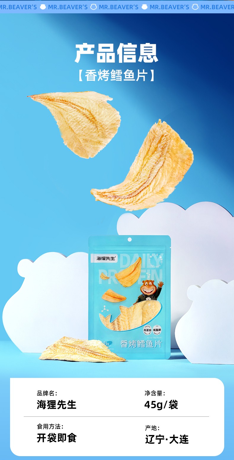 商品名称:海狸先生高蛋白低脂肪香烤鳕鱼片45g/袋*3