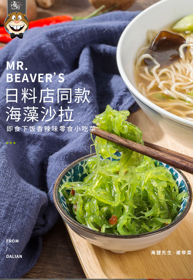 商品名称:海狸先生休闲下饭菜麻辣裙带菜100g/袋*3+酸甜裙带菜100g/袋*3