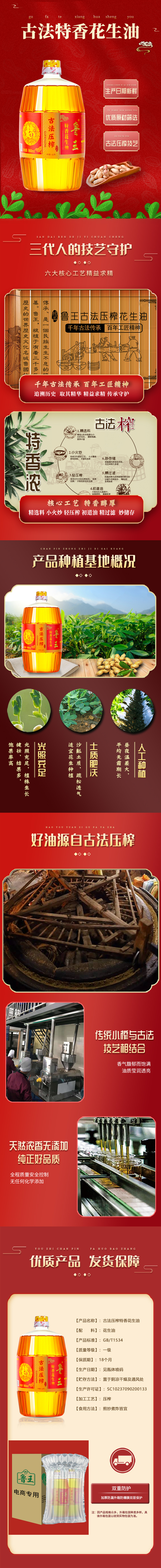 商品名称:鲁王 古法压榨特香花生油 2瓶*960ml