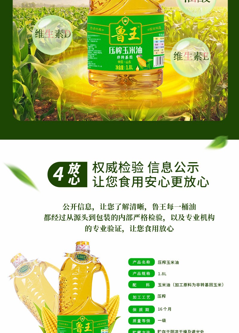 商品名称:鲁王 压榨玉米油绿色健康 1桶*1.8L