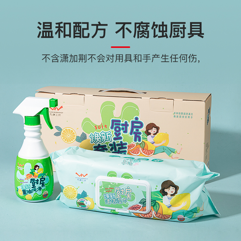 礼缘工场 厨房焕新套装 清洁湿巾*1+ 油污净*1